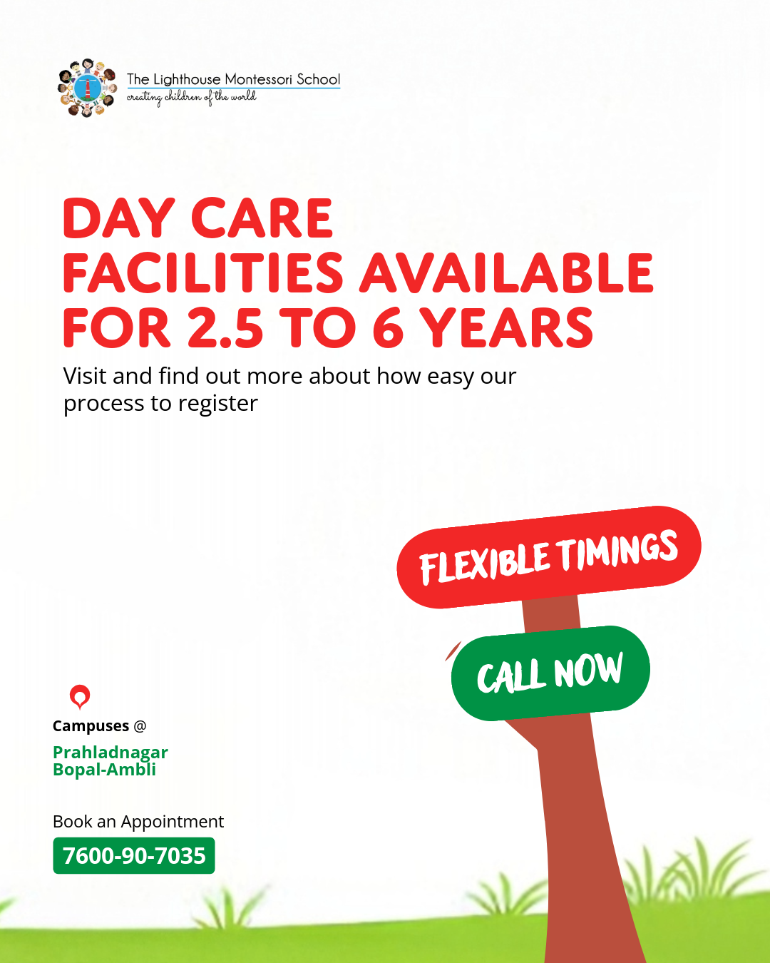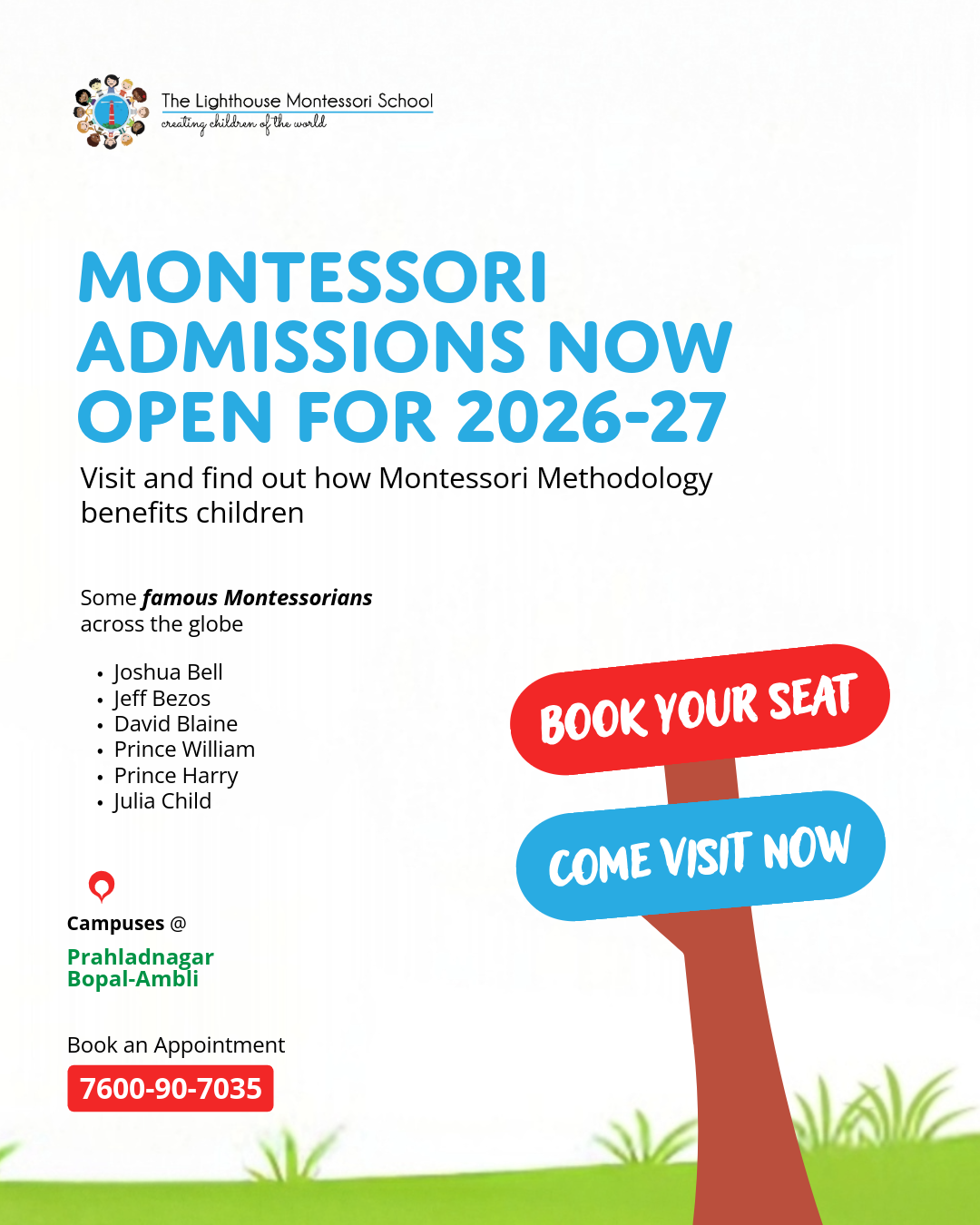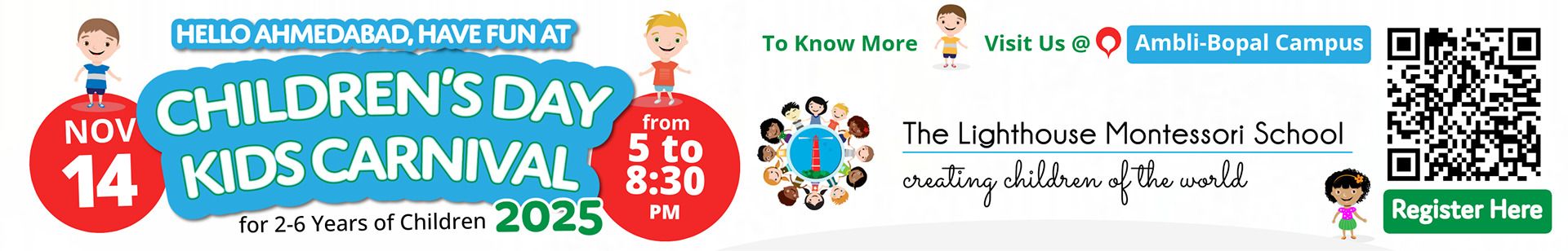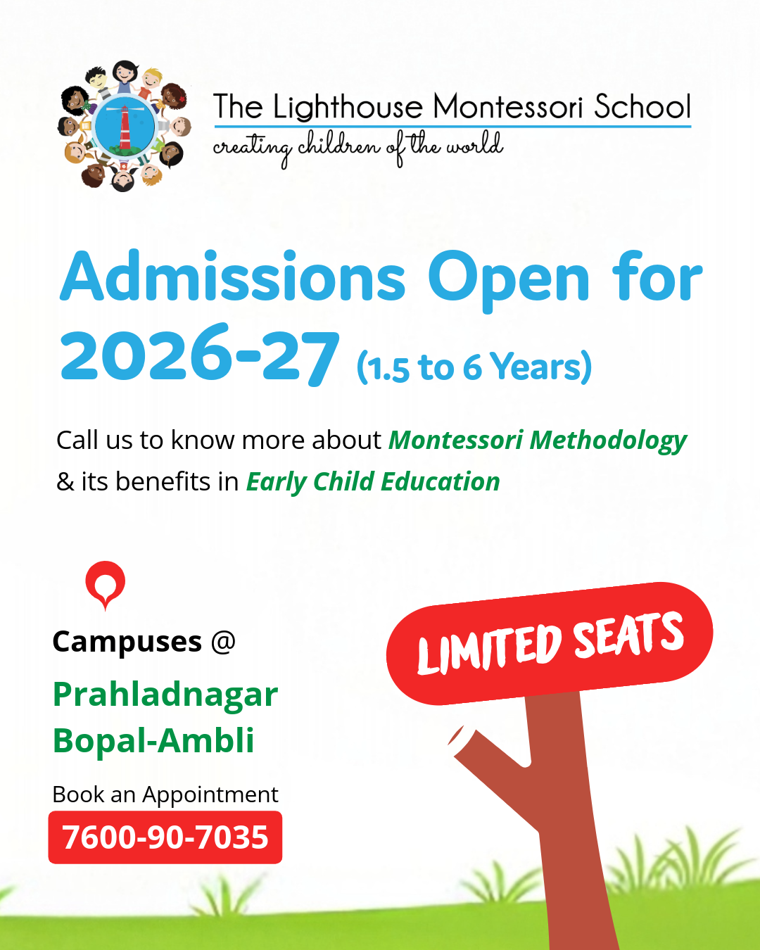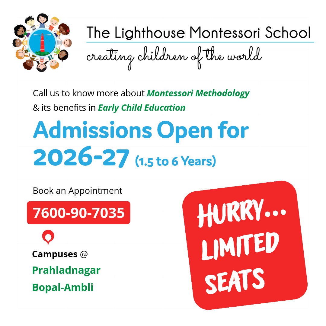 The Lighthouse Montessori School (TLMS) is a noble attempt to promote authentic Montessori principles and schooling in the city of Ahmedabad. TLMS’s first school was set up in 2020 with complete Montessori Apparatus and a beautiful & peaceful environment for children of age groups 2.5 years to 6 years. TLMS envision a safe environment, where children enhance their physical, cognitive, emotional and social skills that helps nurturing them in these formative years to become future civilized citizen of the world who will further contribute towards a peaceful and progressive society.